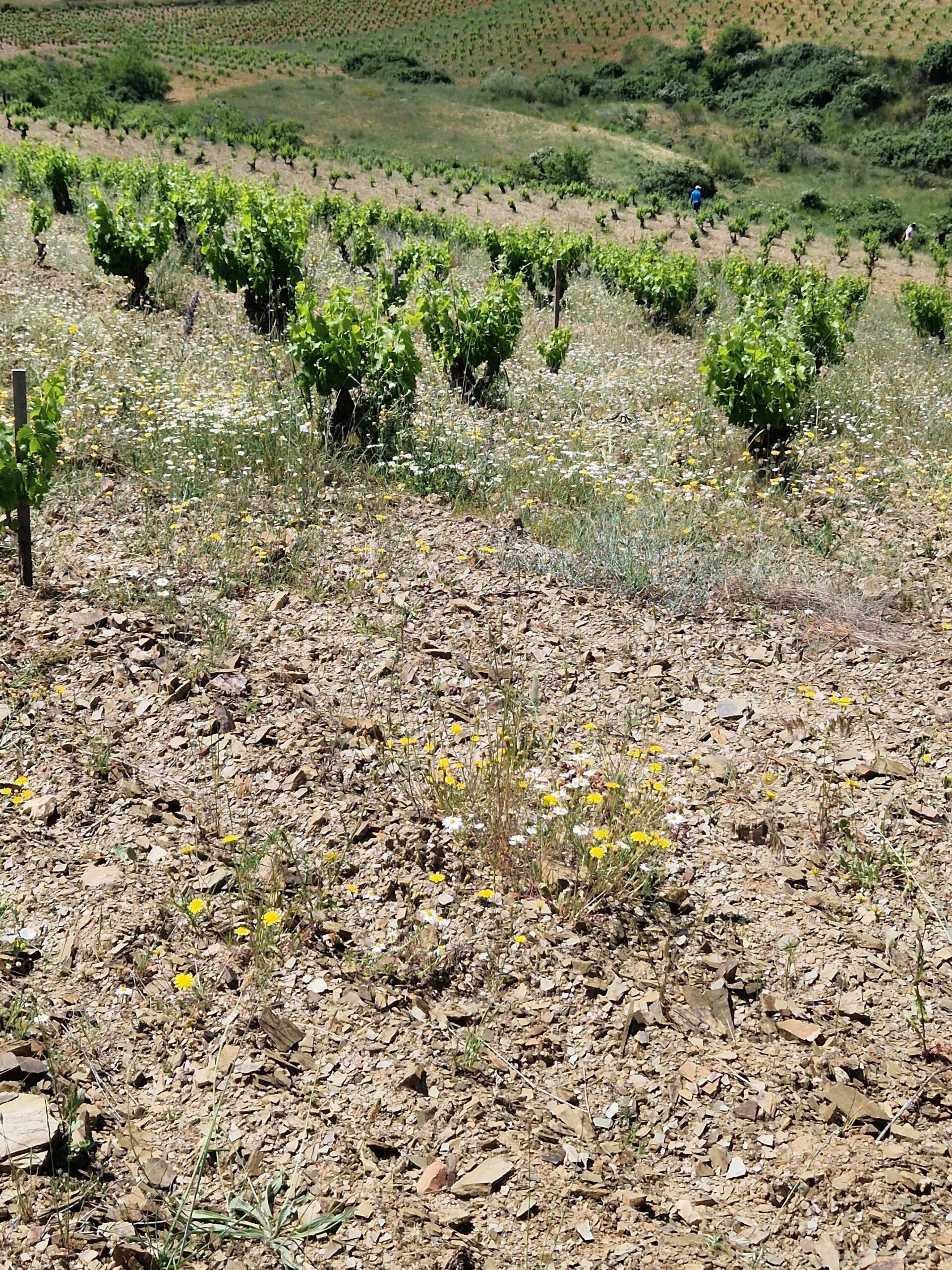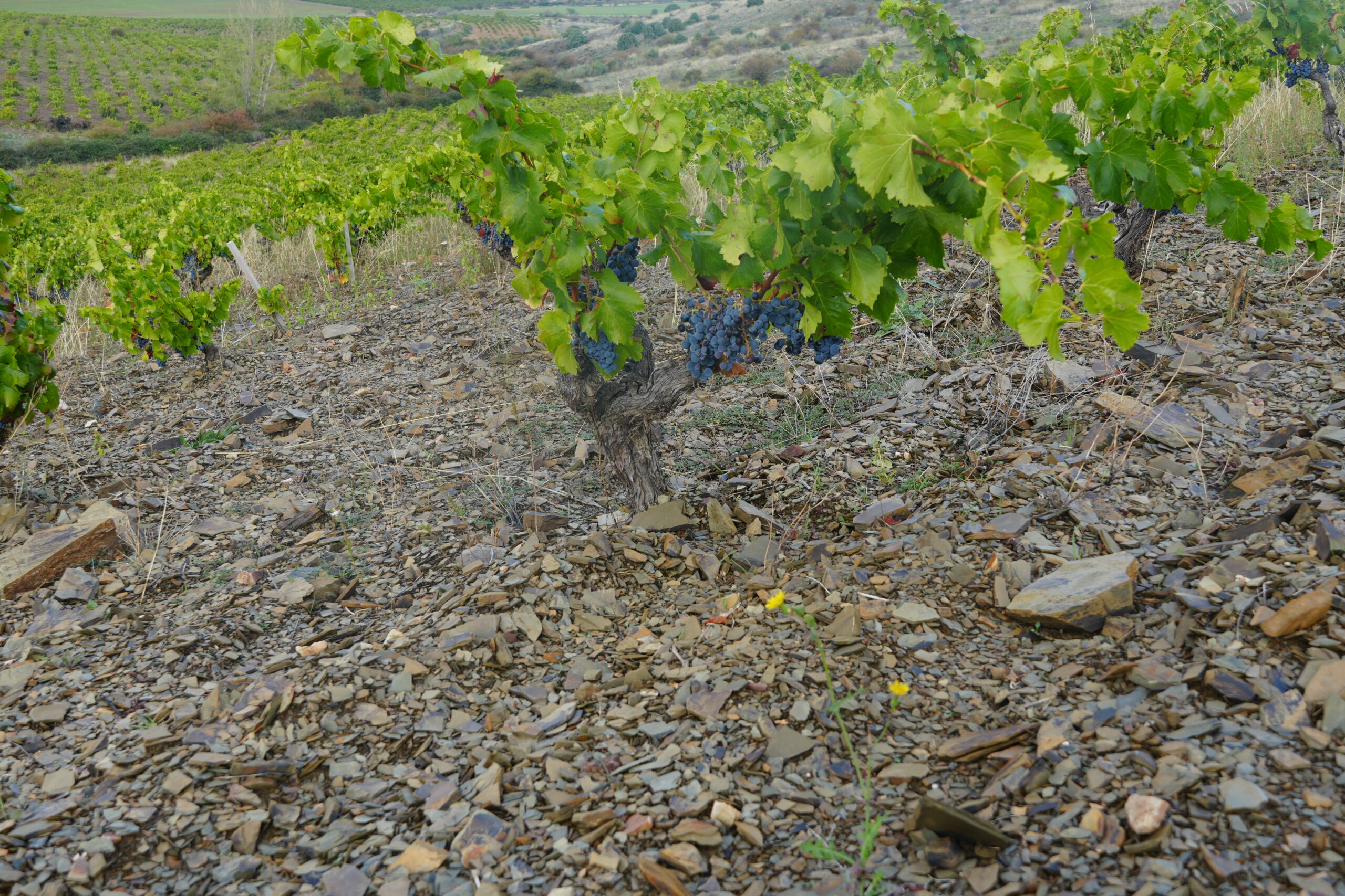 Situada a más de mil metros de altitud la finca se extiende sobre un terreno de pura pizarra gris, áspera y noble. Un suelo que obliga a la vid a luchar, a hundir sus raíces en busca de vida.